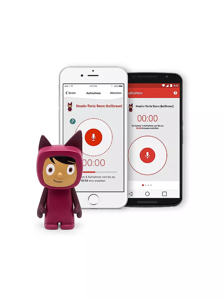 Mit der dazugehörigen, kostenlosen Smartphone-App können eigene Sprachaufnahmen aufgezeichnet und dem Kreativ-Tonie zugewiesen werden.Â
