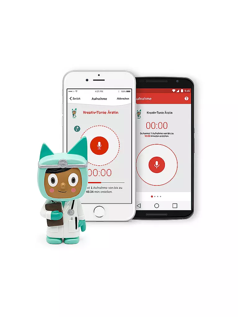 Mit der dazugehörigen, kostenlosen Smartphone-App können eigene Sprachaufnahmen aufgezeichnet und dem Kreativ-Tonie zugewiesen werden. Â
